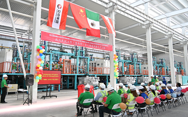 7月17日,立中(墨西哥)公司在熱工車間舉行首只鑄造車輪下線慶典儀式,蒙特雷海關(guān)工業(yè)園區(qū)商務(wù)總監(jiān)Daniela Silva女士等外部嘉賓、集團(tuán)駐墨領(lǐng)導(dǎo)、公司班子成員、公司中籍和墨西哥籍員工代表共計60余人參加了慶典儀式。
