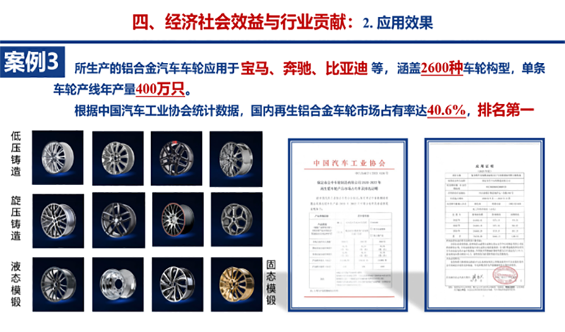 立中集團(tuán)子公司保定市立中車輪制造有限公司作為核心參與單位,與青島理工大學(xué)、中南大學(xué)、青島海聯(lián)金匯汽車零部件有限公司、重慶美利信科技股份有限公司等13家單位聯(lián)合攻關(guān),立中集團(tuán)董事長臧永興作為主要完成人(第四位)也參與其中。最終,該項目獲得“技術(shù)難度大、創(chuàng)新性強(qiáng),整體達(dá)到國際先進(jìn)水平,其中汽車底板裝配一體化關(guān)鍵技術(shù)、輪轂雙邊澆立式旋壓形性協(xié)同關(guān)鍵技術(shù)達(dá)到國際領(lǐng)先水平”的高度評價,充分彰顯了立中集團(tuán)在鋁合金車輪制造領(lǐng)域的技術(shù)實力和創(chuàng)新能力。