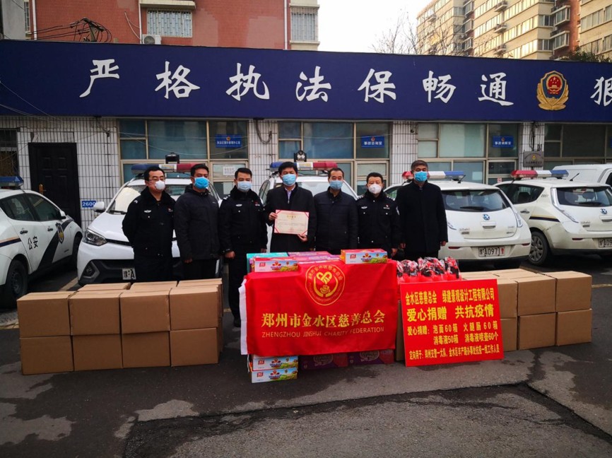 王建發委員一行首先來到鄭州市交警一大隊,鄭州市交警一大隊指導員劉世中先生率干警迎接。王建發先生對鄭州市交警一大隊干警進行親切慰問,對守衛平安鄭州辛勤戰斗在一線的交通干警表示衷心的感謝,并向他們捐贈了急需的防疫物資及生活物資。鄭州市交警一大隊指導員劉世中表示:“十分感謝王建發委員和綠建公司對我們工作的大力支持!疫情就是命令,防控就是責任,我們一定堅守職責,守護人民群眾的安全!”
