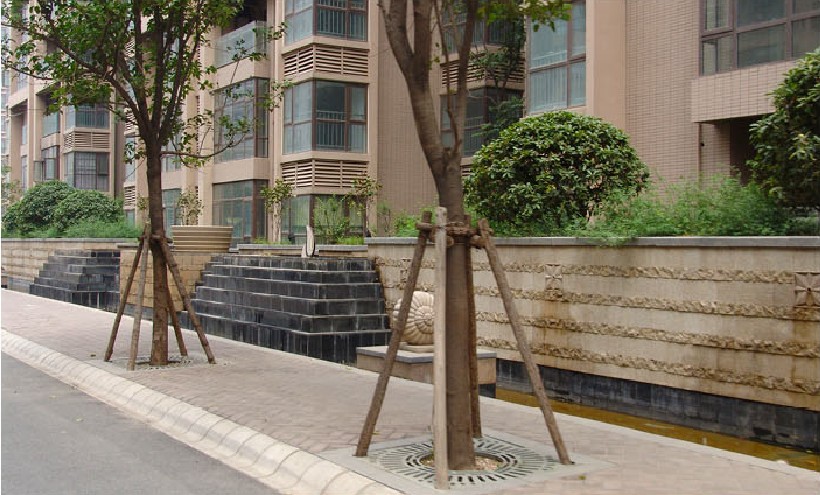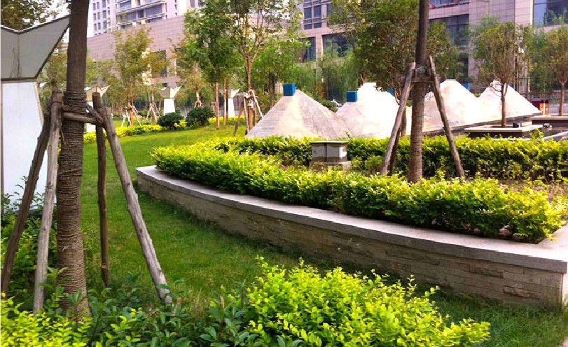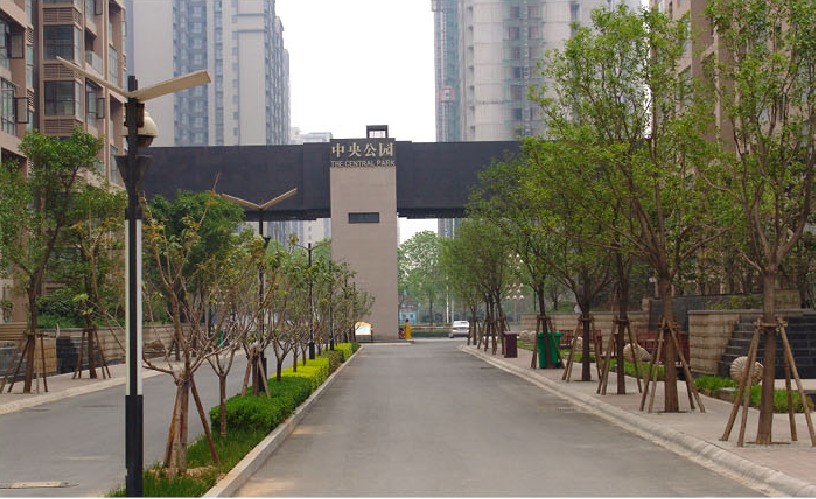 該小區(qū)結(jié)合現(xiàn)代國際先進的設(shè)計理念,是景觀風格與建筑的和諧統(tǒng)一,各種形式的水景,增加小區(qū)活力;植物景觀以當?shù)刂参餅橹鳎嵘参锍苫盥?,加強人們的歸屬感。