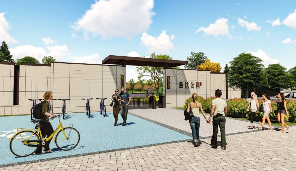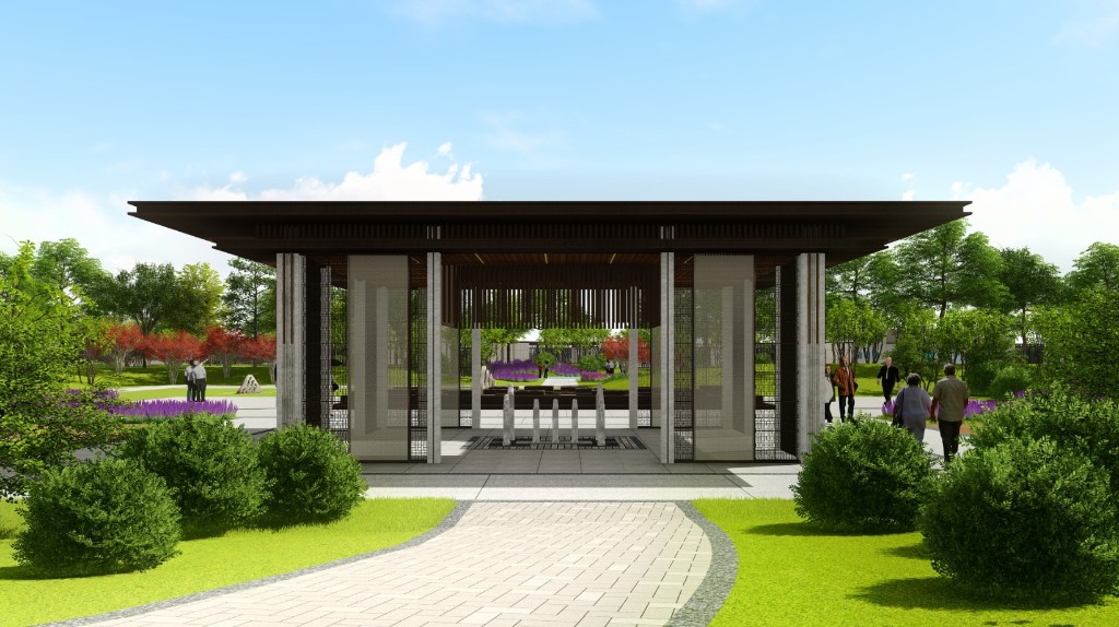 方案依據(jù)以人為本設(shè)計(jì)原則,將傳統(tǒng)文化與現(xiàn)代美學(xué)相結(jié)合, 采用藏、漏、擋、看等景觀設(shè)計(jì)手法,使“禮——探——聽(tīng)——開(kāi)—— 臨——合——趣——入”景觀脈絡(luò)貫穿整個(gè)方案設(shè)計(jì),將公園劃分為入口景觀區(qū)、自然活動(dòng)區(qū)、康體健身區(qū)、養(yǎng)生休閑區(qū)、水景觀賞區(qū)、 禪意空間、生態(tài)停車區(qū)七大空間。軒臺(tái)亭廊,水波連橋,屏風(fēng)景墻、 枯山水景、石鼓地雕,花木景石等景觀小品穿插交融,增加新鮮活力,使景觀空間豐富多樣,層次分明,打造令人舒適、精致典雅的 生態(tài)公園景觀。