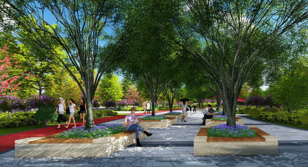 設計理念:尊重現有地形、地貌,并依據現場與周邊實際環境分區、分段定位設計特色,將地域特征和當地文化融入到景觀設計中,突出“群落化、大綠量、多功能”的特點,運用海綿城市理論及規范,打造景觀特征明確,耐粗放管理的特色的生態景觀廊道。