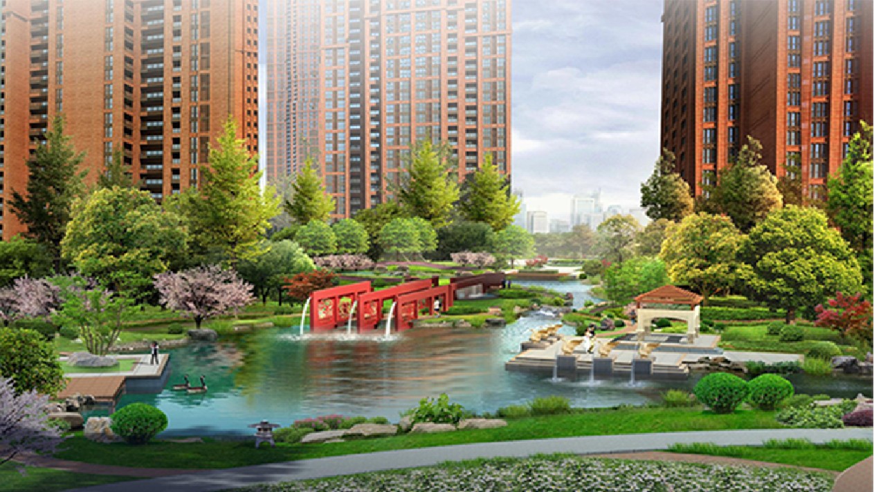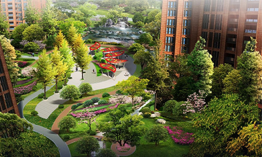 設計以“家”歸屬感和“自然”的親近性為基礎理念,一系列開敞性的,供廣大居民享用的、充滿生活氣息的景觀空間散布在小區內的各個組團內,以達到每個組團都有自己的獨特的生活特色與空間。