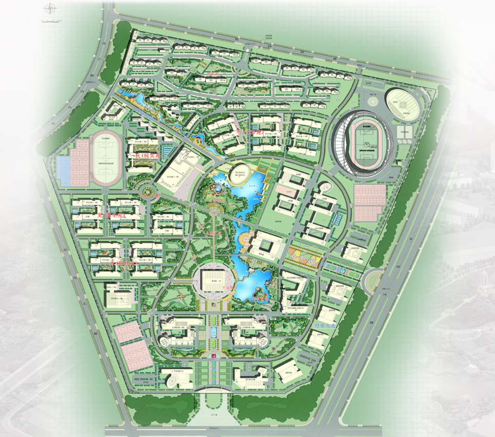河南財經(jīng)政法大學新校區(qū)位于鄭州市鄭東新區(qū)龍子湖畔,南側(cè)為金水東路。