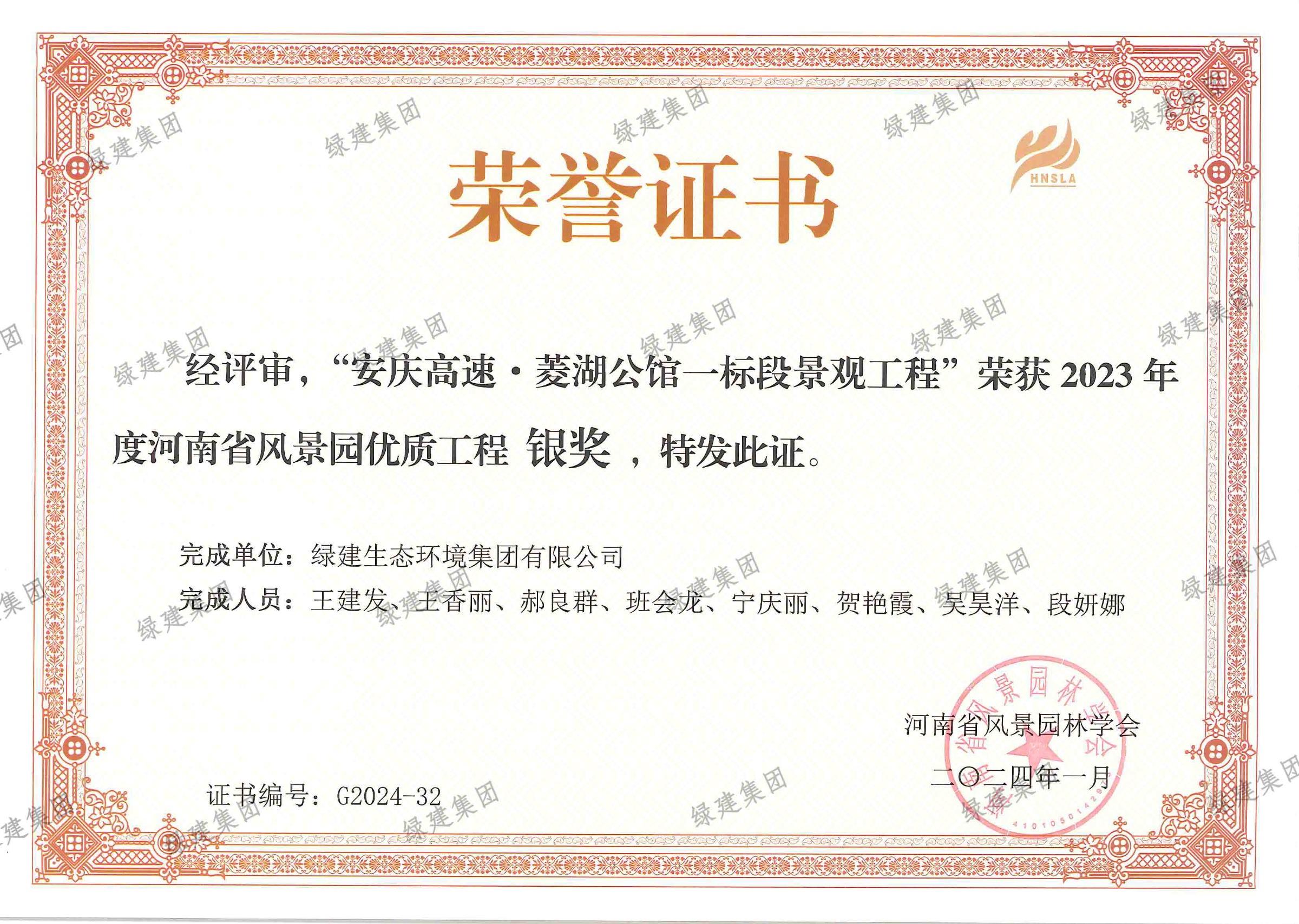 2023年度安慶高速菱湖公館優(yōu)質(zhì)工程銀獎(jiǎng)