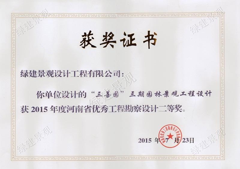 2015年河南省優(yōu)秀工程勘察設(shè)計二等獎(三善園)