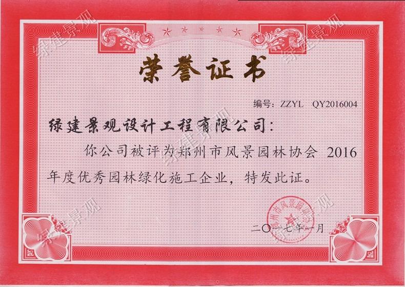 2016年鄭州市優秀園林綠化施工企業