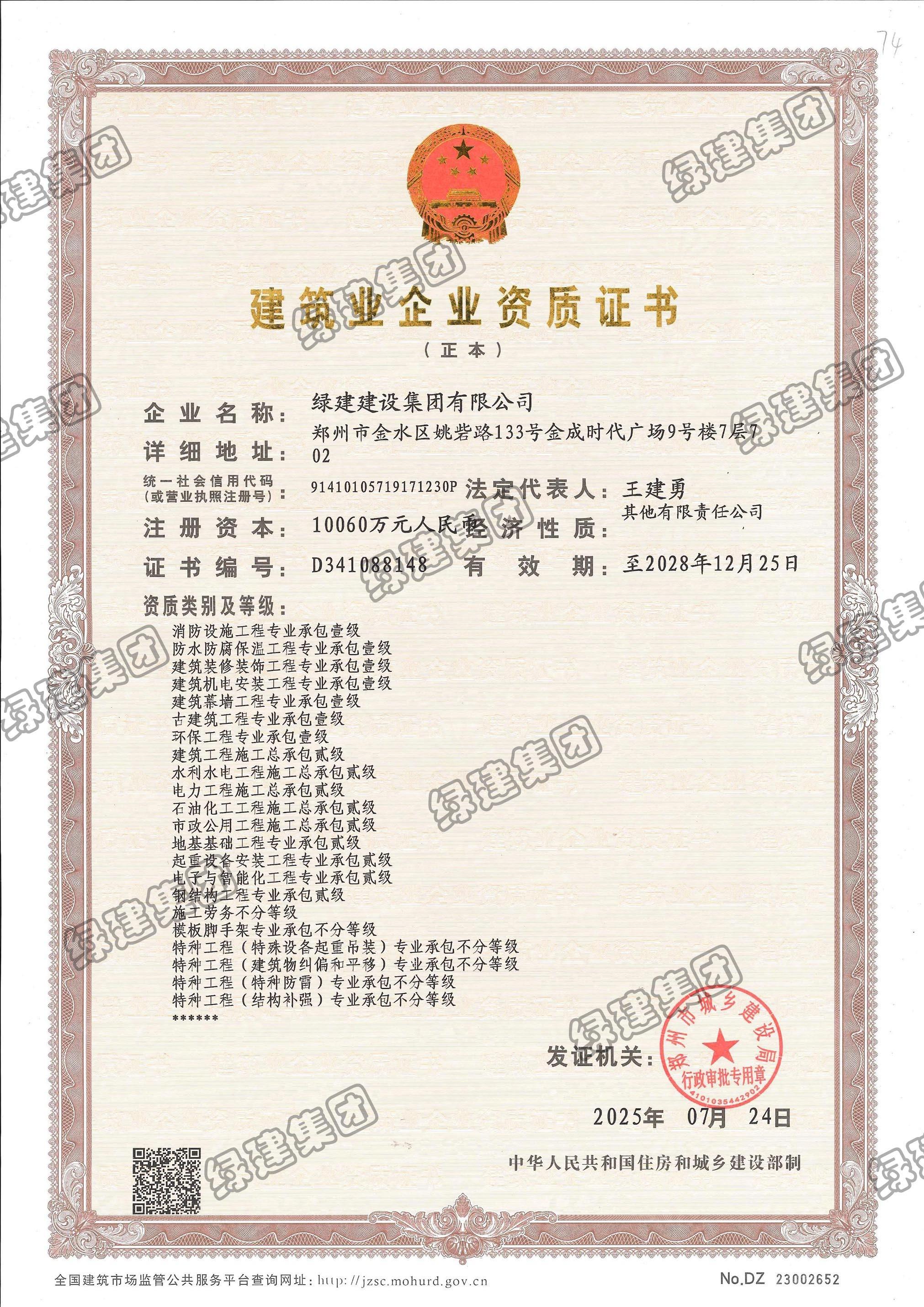 建筑業(yè)企業(yè)資質證書