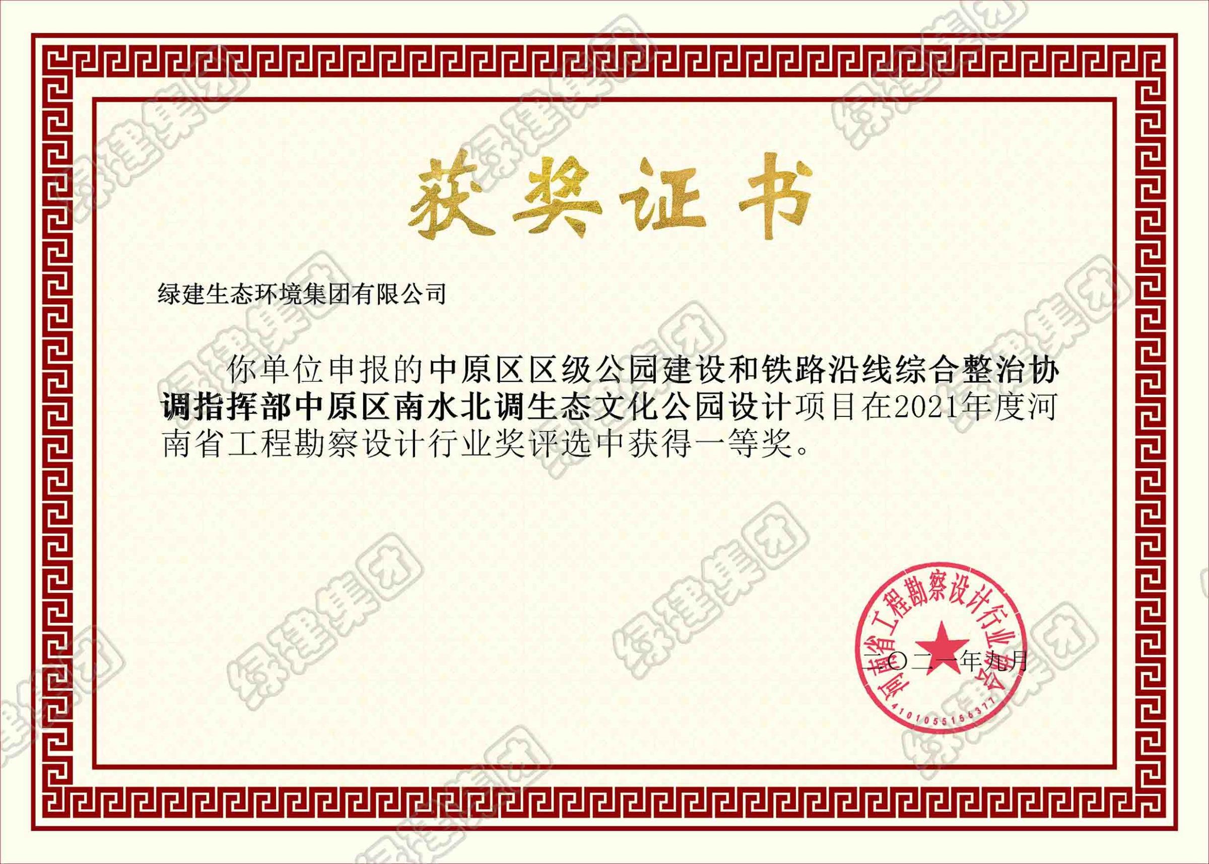 河南省工程勘察設計行業獎一等獎