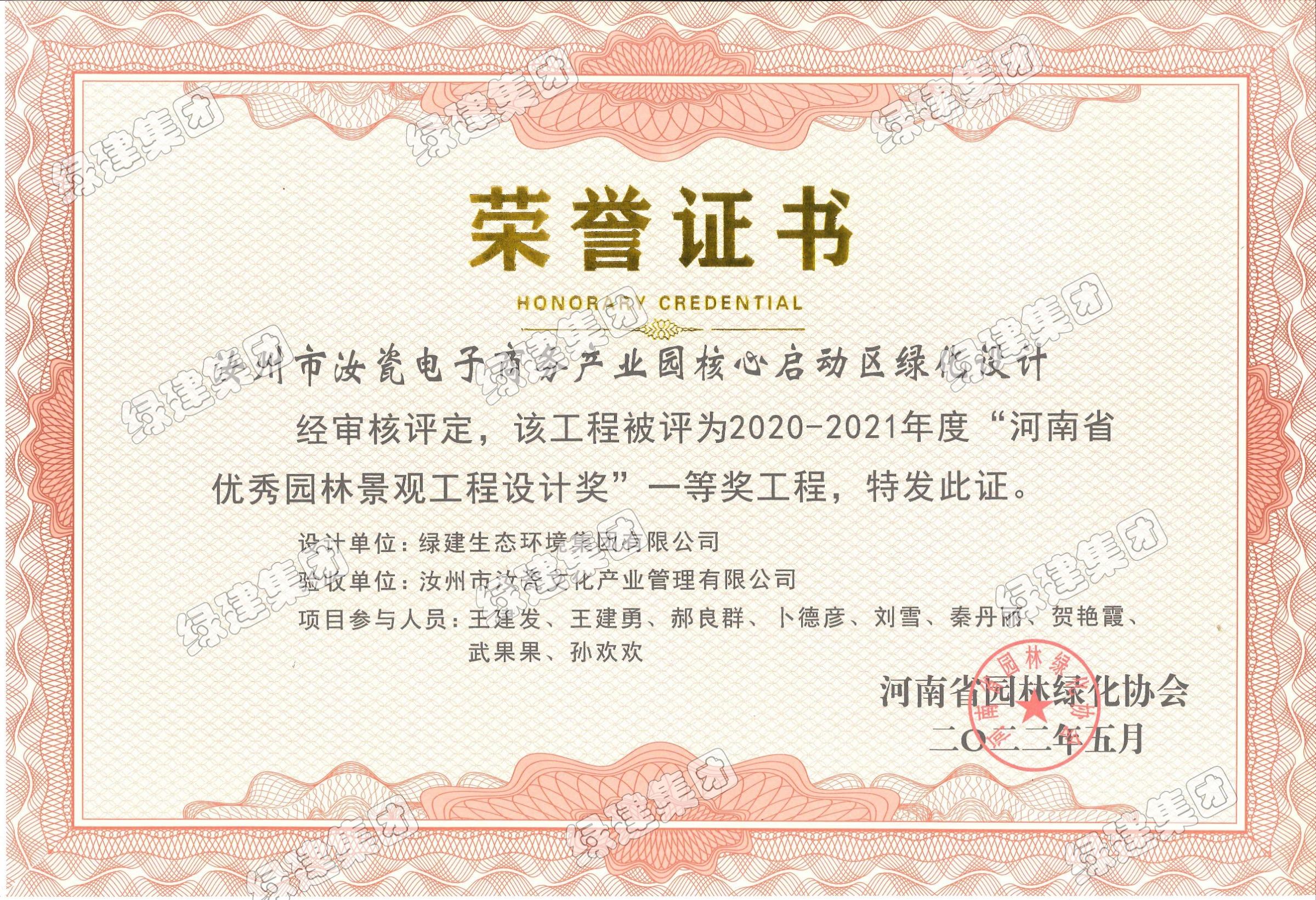 汝州市汝瓷電子商務產業園核心啟動區綠化設計——2020-2021年度河南省優秀園林景觀工程設計一等獎