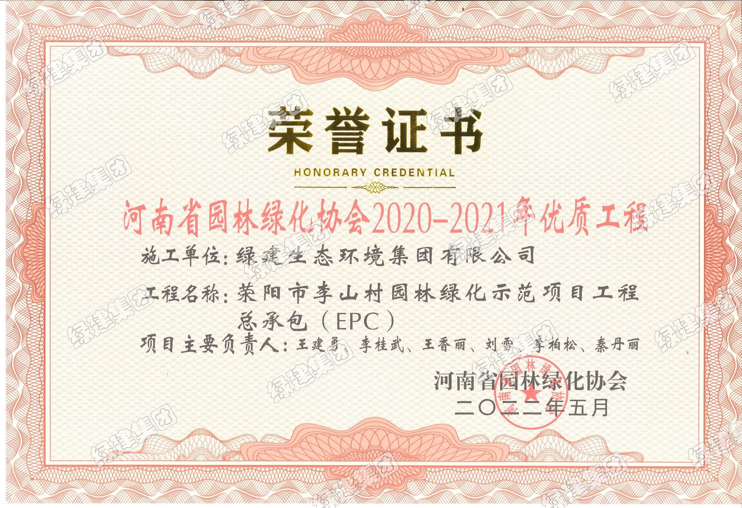 滎陽市李山村園林綠化示范項目工程總承包(EPC)——河南省園林綠化協(xié)會2020-2021年優(yōu)質(zhì)工程